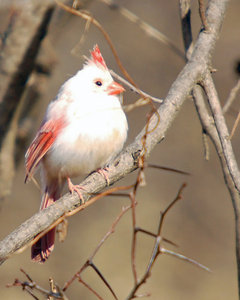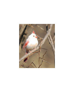 A year or so before that, we had a male cardinal who was so light, he was a pale golden yellow. I have pictures of that somewhere on a floppy. I know diet levels of carotene feed into the saturation of their red feathers, but this one wasn't even orange.