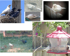 The best (to me) was a White Raven. After it fledged, I never saw it again. We routinely see leucistic Eurasian Collared Doves with various amounts of white. And last summer we had a white House Sparrow for many months. We also have various colors of House Finch - from the normal red to other shades of orange and yellow.
