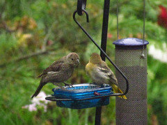 These colorful songbirds prefer woodlands and forest edges, but they’ll visit yards with fruit-producing trees and shrubs