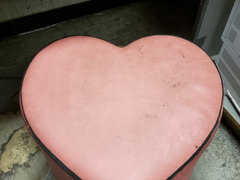 I still have the large canvas ottoman that I chalk painted pink and waxed a few years back, but I'm changing around the living room and have been doing a little window shopping (a phrase that dates me, I shop online but remember when one went and actually went into stores and window shopped store windows).