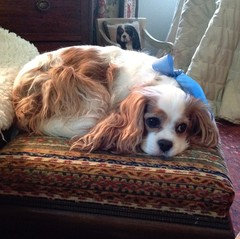 I still have Shimmer, my little tricolor girl I got when Godfrey was 9 - she was nearly 6 at that time, now 13. And last year, I added a new blenheim boy, Roman, who is now 6. He's handsome fella but just doesn't have that same melting face that Godfrey did.