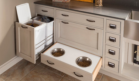 See the many ways you can incorporate a food and water station for animals in your kitchen, laundry room or mudroom
