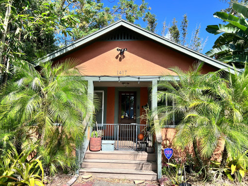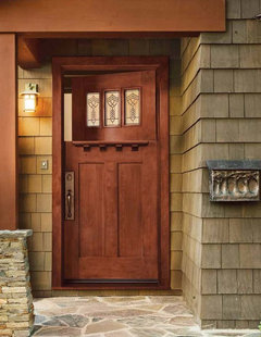 Our current door is wood and I love it, but it does not stay closed, has a crack, and there are gaps around the doorframe, so we are looking to replace it without spending several $1000s. Our home is 1925 Craftsman with stucco finish. We will also be painting the exterior a new color. What kind of door do you think we should look for? Thanks for your feedback and help with this decision.