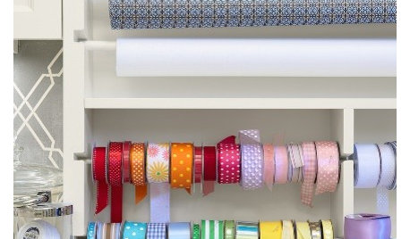 Put the perfect finish on presents with a wrapping area that keeps paper, ribbon and tissue in their places