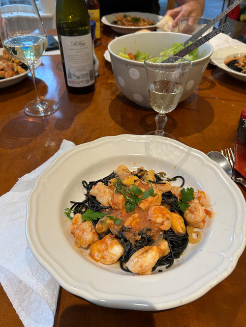 Comments (102)Simple stuff tonight Salmon lightly cooked in mirin-sake-soy-sugar (teriyaki) Oysters from Waluppa (sp) Bay Scallops coated in flour with onion and garlic and mushroom powder, sauteed Beef short ribs, I tried first cooking then at 350F with full steam for 10 min, then did a sort of rub, let sit to dry, then broiled at 425F no steam 3 minutes. I’ve a new cooking toy, and trying to figure out how it works....See More- 13 days ago