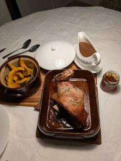 Comments (34)Talking about turkey breast for two...here's what I have done with good results: I was feeling under the weather with the flu one Christmas and as there were just the two of us for Christmas dinner I made a change and instead of buying a whole turkey, I bought a whole breast, which I roasted with an orange, onion, jam and thyme glaze. The results came out so tender and juicy that even I was surprised. I made a quick dressing which I cooked alongside in a separate dish and made a gravy from deglazing the pan with the vegetable water and a little help from a teaspoon each of Bisto gravy granules, Knorr dry onion soup, cornstarch and an Avecrem chicken stock cube. Served with brussels sprouts, peas, carrots, mashed potatoes and gravy. So this is what I did: Ingredients: 2 TBS sugarless apricot jam 1 heaping TBS dried thyme + a little more for sprinkling on top 1 teasp garlic powder fresh ground black pepper 2 TBS runny honey 2 TBS butter 1 orange 1 onion cut into 8ths Turkey breast weighing 1.360 kg (slightly under 3 lbs) 1. Preheat oven to 350F (I used 325F in my fan oven) 2. In small bowl, mix the jam, thyme and garlic powder to a paste. Spread all over the turkey breast. 3. Cut orange in half and squeeze some of the juice over the turkey, then cut orange into slices and arrange under and on top along with the slices of onion. 4. Cut butter into pieces and dot all over and under breast, then drizzle honey over all. 5. Grind black pepper over top and sprinkle on a little more dried thyme. 6. Cover with foil and roast 1 hour, then remove foil, baste once with juices and butter in pan and roast for another half hour (without foil) or until a thermometer inserted in thickest part of breast reads 170F. 7. Serve with turkey dressing, cranberry sauce and gravy. SharonCb...See MoreUrp?!! Sweet Potato Casserole