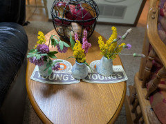 Create a simple yet lush vignette with a few plants and some everyday items