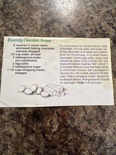 Comments (2)Posted by lpinkmountain (My Page) on Sat, Sep 18, 10 at 12:01 I made Terri's Cappicinno muffins this morning since I had some coffee and chips to use up. I did two small tweaks, used 1/2 WWH pastry flour for some of the flour, and used 3/4 cup sugar instead of 1 cup. They were great with my morning coffee! I didn't bother with the white chocolate glaze--they were sweet enough and I'm a terminally lazy cook. It's a sunny day and me and BF are going to a festival. That does it for me for chocolate, I am all out, lol! o RE: Cookalong #34 ----- CHOCOLATE clip this post email this post what is this? see most clipped and recent clippings Posted by sally2 (My Page) on Sun, Sep 19, 10 at 8:49 I'm a chocoholic, and I can't believe I've not been testing every recipe here, but I've just not had the opportunity to make anything yet. Plus, it's still just so hot, or actually so humid, I haven't been in the mood to bake much. But, I realized I have some chocolate pasta I never did anything with, so I'm going to try something out with it. I decided I'm going to make a desert type mac and cheese, using the chocolate pasta and marscapone or cream cheese. I figured I could make a ganache, or some sort of bechemel, add the marscaone and some sugar, and mix it with the cooked pasta. I'll fold in some raspberries and put it in a baking dish. Then I'll top it off with some kind of crumbly walnut type topping, and bake it a little, or at least run it under the broiler to brown the topping, maybe. That part I'm a little shaky on. Maybe I won't bake it. But I picture it all topped with some shaved chocolate. I've never used the pasta because it just seems like it would be so heavy of a desert. But this cookalong gives me a good excuse to use them. I'll report back on how it turns out. Sally o RE: Cookalong #34 ----- CHOCOLATE clip this post email this post what is this? see most clipped and recent clippings Posted by empress (My Page) on Sun, Sep 19, 10 at 15:24 Wow! I have gotten so many wonderful recipes from this forum over the years, I cannot believe I can contribute some that I know are wonderful that I have not seen here before. Here are three of my favorite chocolate recipes: Dessert Cheeseball Soften: 8 oz. of cream cheese 1/2 cup butter (1 stick). Mix together well with: 2 tablespoons of brown sugar 1/2 cup of powdered sugar Stir in: 1/2 cup mini chocolate chips After that is all mixed together, press firmly into a round bowl and chill completely - I recommend overnight. Remove from bowl, retaining shape as well as possible (maybe you should line the bowl with plastic wrap before pressing cheese mixture into it....). Ultimately, you want to shape this into a nice cheese ball and roll it into more mini chocolate chips. Place on center of serving dish and re-chill. Serve surrounded by graham crackers, vanilla wafers, chocolate wafers, apple wedges, or whatever sounds good to you. Enjoy! ~~~~~~~~~~~ One-pan Chocolate Pudding Cake from Land O' Lakes Cake: 1 cup flour 3/4 cup granulated sugar 3 tablespoons cocoa 2 teaspoons baking powder 1/4 teaspoon salt 1/2 cup milk 2 tablespoons vegetable oil 1 teaspoon vanilla Topping: 3/4 cup brown sugar 1/4 cup cocoa 1 3/4 cups boiling water or coffee Heat oven to 350 degrees F. In a mixing bowl, stir together flour, sugar, 3 tablespoons cocoa, baking powder and salt. With a fork, mix in milk, oil and vanilla. Spread the batter evenly in a lightly buttered 9-inch square baking pan. Combine brown sugar and 1/4 cup cocoa; sprinkle over the batter. Slowly pour boiling hot water over the batter and brown sugar-cocoa mixture. Bake chocolate pudding cake for 40 minutes. Let chocolate pudding cake stand for 5 minutes. Spoon into dessert dishes or cut into squares. Top chocolate pudding cake with ice cream or whipped topping. ~~~~~~~~~~~~ This is a recipe I have served since the mid-70's, so I more than likely found it in a woman's magazine at that time. Brownie Mint Dessert 3 egg whites, room temperature 3/4 cup sugar 3/4 cup chocolate wafer cookie crumbs 1/2 cup walnuts or pecans, chopped 1/2 tsp vanilla extract 1 cup whipping cream 2 Tbsp confectioner's sugar 1/4 cup soft peppermint stick candy, crushed chocolate curls grated chocolate Beat egg whites until foamy. Gradually add sugar, 1 tablespoon at a time, beating until mixture is glossy. Fold in crumbs, chopped nuts, and vanilla. Spread mixture into a buttered 8-inch square baking pan. Bake at 325 degrees F for 30 minutes. Cool completely. Beat whipping cream until foamy; gradually add powdered sugar, beating until soft peaks form. Fold in peppermint; spread over chocolate layer. Garnish with chocolate curls and grated chocolate. Cover and chill at least 3 hours. Cut into squares to serve. Store in refrigerator. This recipe is rich, but light and cool, so we enjoy it in the summer. I have successfully made substitutions in this recipe, such as scraping the cream out of Oreo cookies to use when I couldn't find the plain dark chocolate cookie wafers. I have used commercial whipped topping when I didn't have cream handy. I have also used regular peppermint candy, but now when I find the softer, puffed, peppermint I stock up and store it in the freezer just for this dessert. Enjoy! And thanks again for all the wonderful recipes, information, and especially inspiration I've received here. o RE: Cookalong #34 ----- CHOCOLATE clip this post email this post what is this? see most clipped and recent clippings Posted by terri_pacnw (My Page) on Sun, Sep 19, 10 at 18:11 Pink, I'm glad you made those changes. I too sub part WWP flour in a lot of things...and reduce the sugar in everything by atleast a 1/4c if it's 1c and 1/2 c for 2 cups of sugar. I agree the drizzle is over kill..but it's a nice addition on a treat plate. o RE: Cookalong #34 ----- CHOCOLATE clip this post email this post what is this? see most clipped and recent clippings Posted by loves2cook4six (My Page) on Sun, Sep 19, 10 at 18:47 Posting from my cel